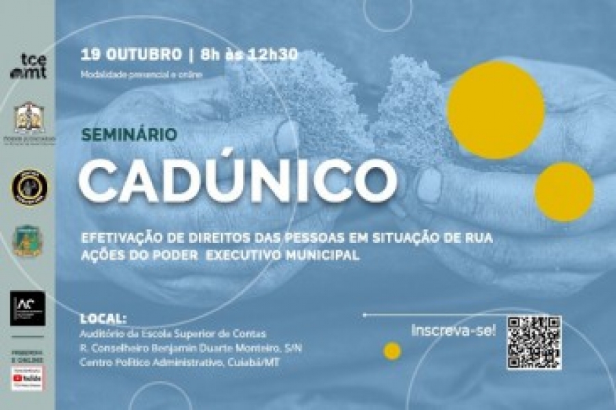 f1f77424d07620e061b64c719103a6ad“CadÚnico e a efetivação de direitos da pessoa em situação de rua, ações do poder executivo municipal” é o tema da capacitação que será promovida pelo Tribunal de Contas de Mato Grosso (TCE-MT), das 8h às 12h30 desta quarta-feira (19). O evento híbrido será realizado em parceria com o Tribunal de Justiça de Mato Grosso (TJMT) por meio da Escola Superior da Magistratura (Esmagis).