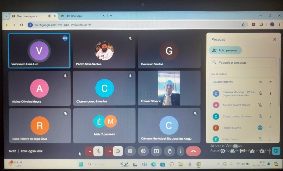 Na noite do dia 14 de agosto de 2024, tivemos a honra de celebrar de modo on-line a décima Sessão ordinária do ano, presidida pelo Presidente da Câmara Municipal Valdomiro Lima Luz, contando também com a presença ilustre dos Vereadores (a) Municipais de São José do Xingu-Mato Grosso.